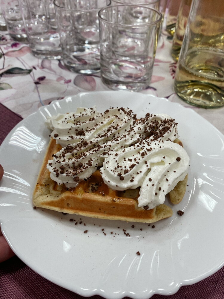 Martin nám na bielom koni nedocválal, no vôbec nám to nechýbalo. Deň sme si spríjemnili vôňou čerstvo pečených vaflí, ktoré naplnili jedáleň teplom a sladkou vôňou. K tomu sme si dopriali pohárik mladého svätomartinského vína z Petrova - Plží, ktoré nám poskytol pán Michal Javornický. Sladké dobroty a svieže víno vytvorili dokonalú kombináciu, a aj bez snehu sme si užili pravú svätomartinskú atmosféru, ktorá bola pohodová.