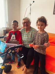 Dňa 23.6.2025 naplnil náš dvor detský smiech, štebot a rozžiarené očká. Navštívili nás deti z MŠ Pri potoku. Priniesli so sebou vlastnoručne vyrobené pozdravy a spoločenské hry, ktoré s úsmevom odovzdali našim seniorom. Bolo to krásne medzigeneračné stretnutie, ktoré v nás zanechalo mnoho príjemných dojmov. Ďakujeme deťom aj pani učiteľkám za návštevu a tešíme sa na ďalšie stretnutia.