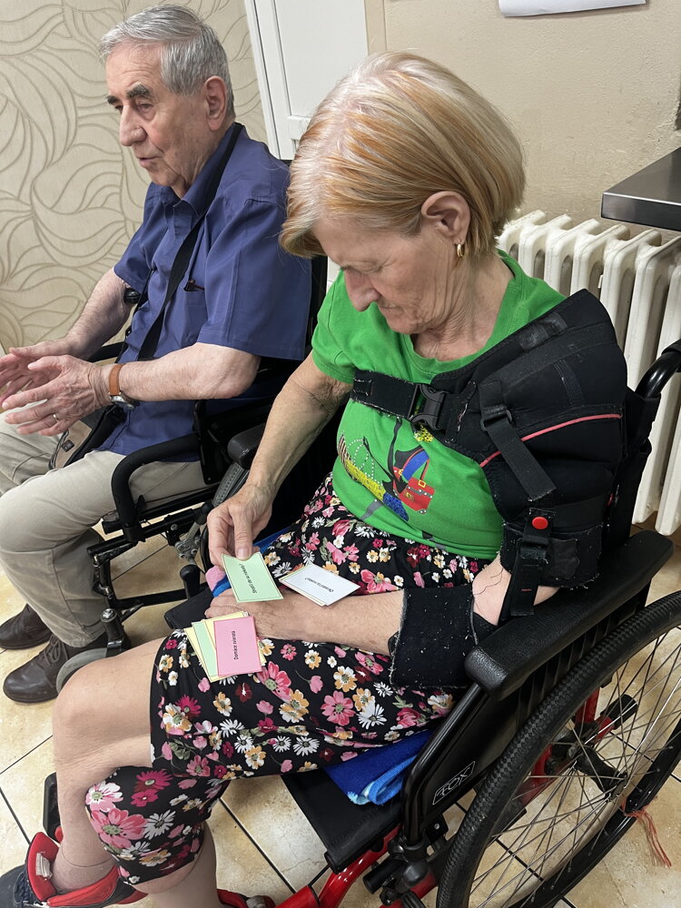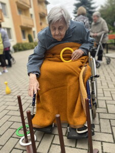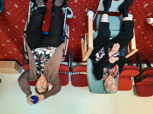 V našom zariadení dbáme na to, aby si naši obyvatelia pravidelne precvičovali telo aj v pohodlí stoličky. Pohybové cvičenia prebiehajú pravidelne a sú zamerané na posilnenie a rozhýbanie nôh a rúk. Okrem klasických cvikov sme zapojili aj masážne loptičky, ktoré pomáhajú pri precvičovaní úchopu a prinášajú príjemnú masáž rúk. Teší nás vidieť úsmevy, lepšiu pohyblivosť a najmä radosť z pohybu.