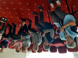 Pohybové cvičenia patria medzi naše najobľúbenejšie aktivity a preto sme sa dňa 12.3.2025 opäť s radosťou zapojili do cvičenia. Program bol prispôsobený aj pre menej pohybovo aktívnych seniorov, takže si každý našiel to svoje. Precvičili sme si telo pomocou jednoduchých cvikov na stoličke, ktoré pomáhajú udržiavať flexibilitu. Použili sme aj masážne loptičky na uvoľnenie rúk a gymnastické gumy, s ktorými sme posilnili svaly na rukách aj nohách. Toto cvičenie si veľmi užívame, pretože nám pomáha cítiť sa lepšie, zlepšuje náladu a prináša nám radosť z pohybu. Už teraz sa tešíme na ďalšie stretnutie!