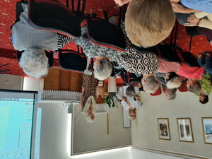 Dňa 10.10.2025 nás navštívila pani Lívia Topolčányová so svojou terapeutickou fenkou Stelou. Stela si okamžite získala naše srdcia svojou pokojnou povahou, hebkou srsťou a priateľským správaním. S radosťou sme ju hladkali, rozprávali sa s ňou a užívali si pekné chvíle. Canisterapia má úžasný vplyv na psychickú pohodu, odbúrava stres a prináša pozitívnu energiu. A to sme dnes cítili všetci. Ďakujeme pani Lívií aj Stele za krásne dopoludnie a tešíme sa na ďalšie stretnutia.