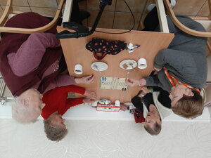 Dňa 14.4.2026 sme sa opäť stretli na príjemnom a zábavnom popoludní. Spoločne sme strávili čas pri spoločenských hrách – niektorí si zahrali karty, iní „Človeče, nehnevaj sa!" či Rummikub. Nechýbali ani tvorivé chvíľky pri maľovaní. Celú atmosféru dotvárala hudba, príjemné rozhovory a dobrá nálada, ktorá nás sprevádzala počas celého stretnutia.
