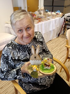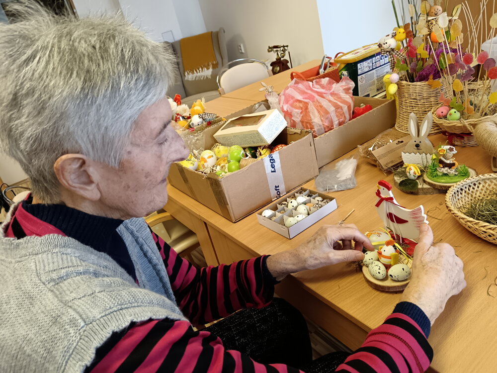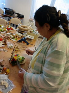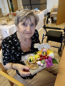 Veľkonočné aranžovanie je skvelý spôsob, ako podporiť jemnú motoriku, kognitívne schopnosti a zároveň vytvoriť sviatočnú atmosféru. Aranžmány nám robia radosť v spoločných priestoroch, na izbách, ale taktiež môžu potešiť aj vás. Pokiaľ nás chcete podporiť, hand made výrobky klientov si môžete zakúpiť za symbolickú cenu pri vstupe do JESÉNIE.