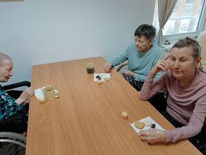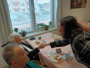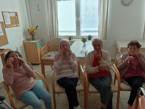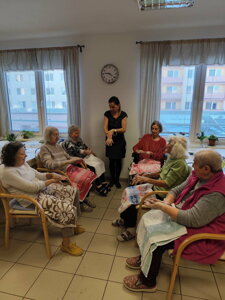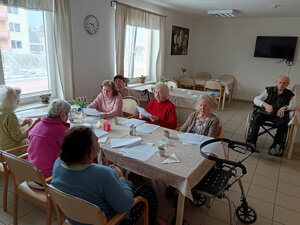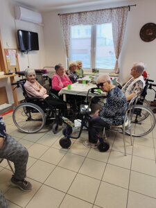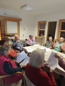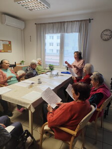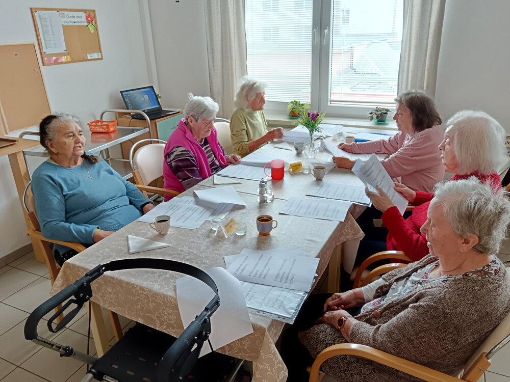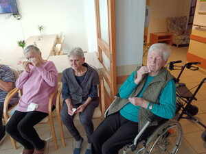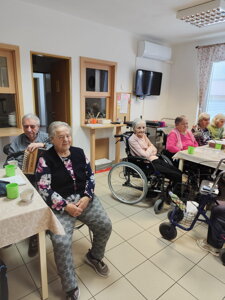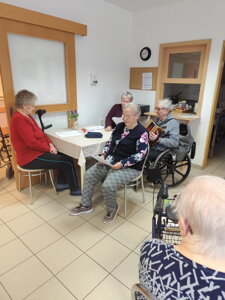 Nová aktivitka "Posedenie pri pesničke" vznikla z iniciatívy našej obyvateľky pani Evičky, ktorá veľmi rada spieva. S ostatnými obyvateľmi si vyberú pesničky a voľný čas takto v príjemnej atmosfére pri kávičke a pesničke prežívajú spoločne.