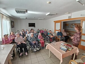 V rámci mesiaca marec, ktorý je venovaný knihám, sme medzi nami s radosťou privítali dňa 13.3.2026 pani Ľubicu Rozborilovú, riaditeľku mestskej knižnice. Priniesla so sebou množstvo kníh, medzi ktorými nechýbali krátke príbehy od slovenských aj zahraničných autorov. Srdečne ďakujeme pani Rozborilovej za návštevu a za pripomenutie, že čítanie dokáže inšpirovať, rozširovať obzory a obohacovať každodenný život. Knihy nás sprevádzajú každý deň a prinášajú chvíle pokoja, zamyslenia a potešenia.