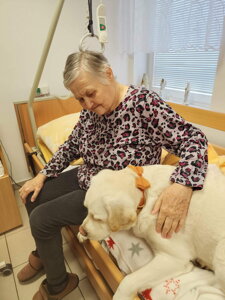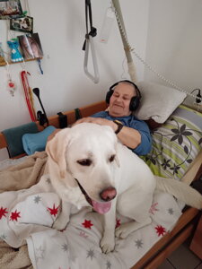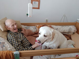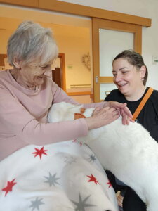 Pravidelná návšteva cvičenej fenky Stely v JESÉNII prináša zlepšenie fyzického aj psychického stavu našich klientov. Jej prítomnosť nám pomáha znižovať hladinu stresu, pomáha pri rehabilitácii, rozvoji jemnej motoriky, vyvoláva spomienky a podporuje verbálnu komunikáciu. Aktivizuje nás vo všetkých smeroch a my sa z každej návštevy veľmi tešíme. Ďakujeme pani majiteľke Lývii Topolčányovej, že medzi nás prichádza.