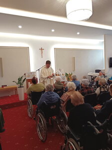 Dňa 9.1.2026 sa v našej kaplnke konala svätá omša, počas ktorej sme sa spoločne modlili za zdravie a pohodu našich obyvateľov a zamestnancov oboch zariadení. Sme veľmi vďační nášmu pánovi farárovi a pánom kaplánom, ktorí k nám pravidelne prichádzajú a slúžia sväté omše. Vaša prítomnosť a podpora sú pre nás veľkou vzpruhou, povzbudením a darom.